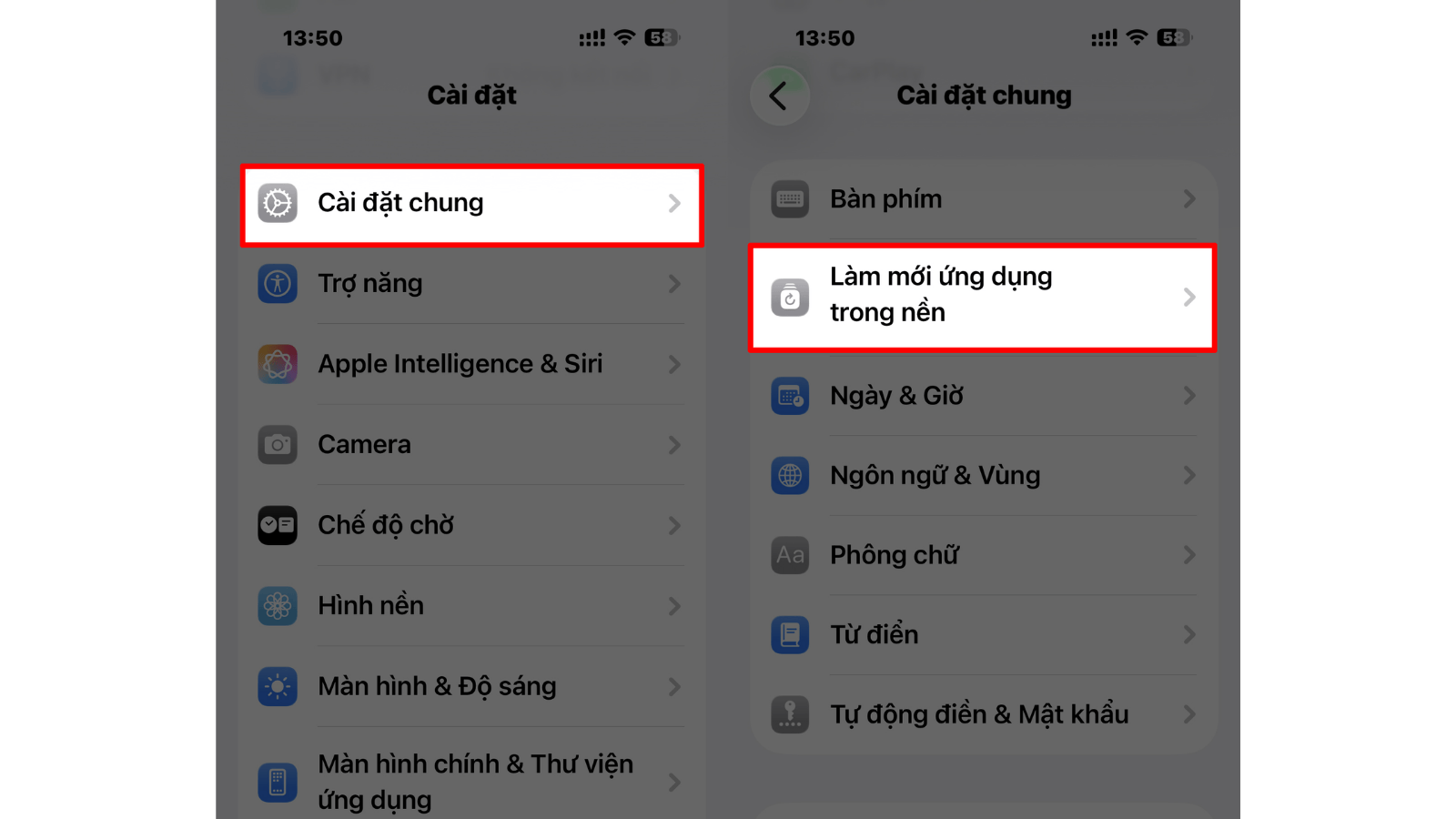 Vào Cài đặt > Cài đặt chung > Làm mới ứng dụng trong nền