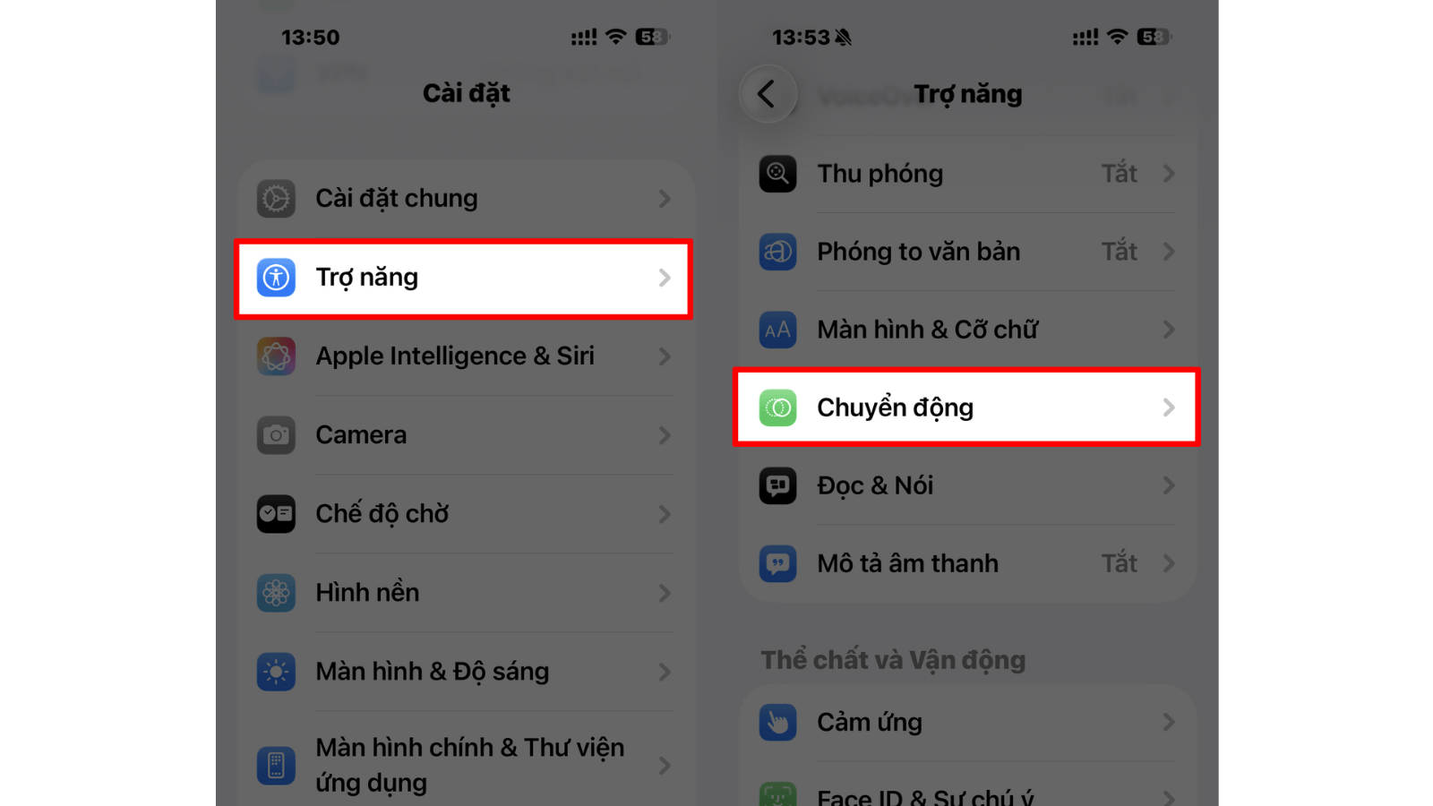 Bật Giảm chuyển động để hạn chế các hiệu ứng chuyển cảnh