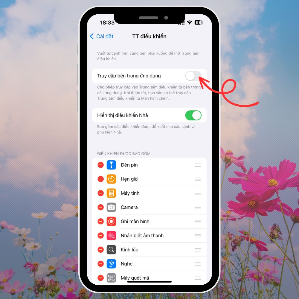 Nếu bạn không muốn bị kéo nhầm vào trung Trung tâm điều khiển trong khi đang sử dụng một ứng dụng, bạn có thể tắt quyền truy cập vào trung Trung tâm điều khiển trong các ứng dụng. Để làm thực điều hiện việc này, truy hãy cập đi vào tới Cài đặt, chọn Trung tâm điều khiển , sau và đó tắt Truy Quyền truy cập bên trong ứng dụng.
