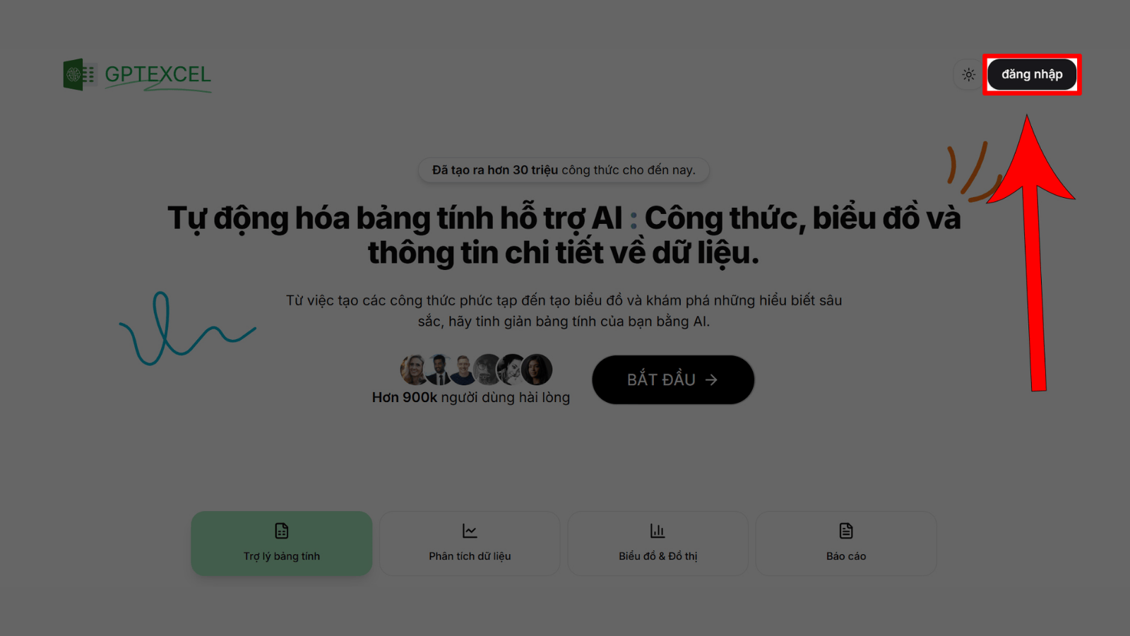 Đầu tiên, hãy truy cập vào trang web GPTExcel tại địa chỉ: https://gptexcel.com