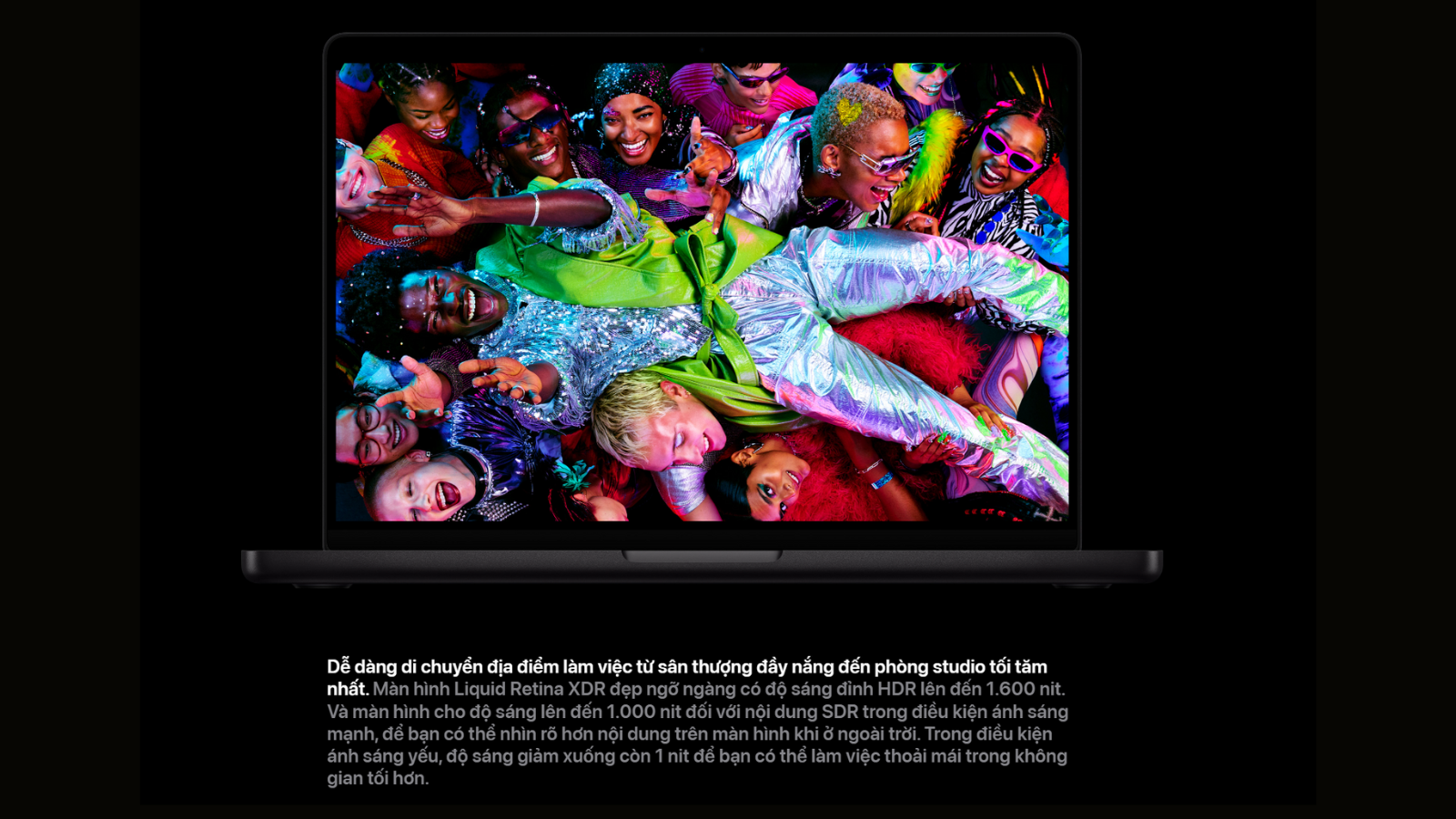 Trang bị màn hình Liquid Retina XDR rực rỡ, độ sáng tối đa 1.600 nit và tỷ lệ tương phản 1.000.000:1.