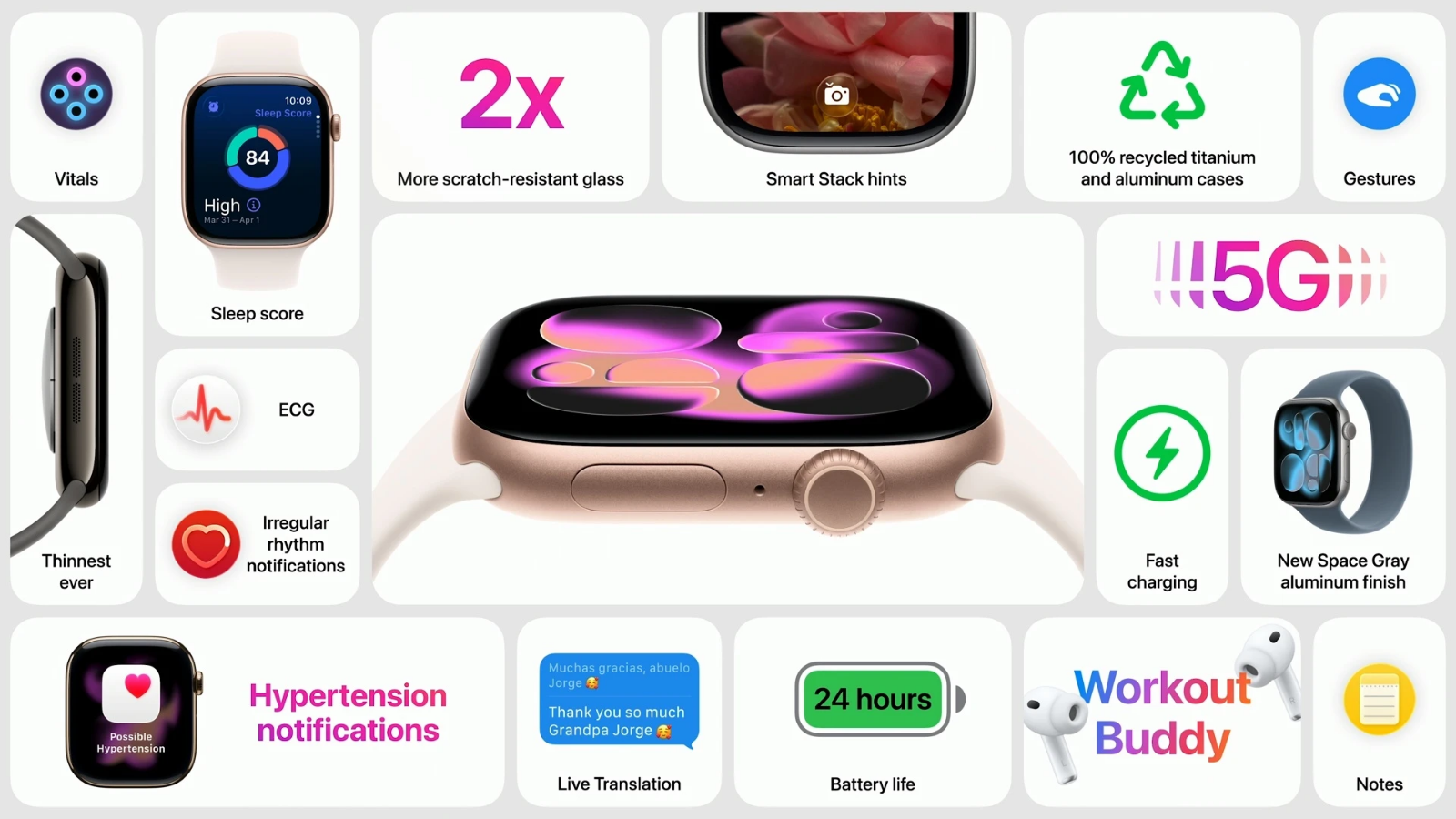 Apple tiếp tục nhấn mạnh khả năng “cứu mạng” quen thuộc với các tính năng như cảnh báo nhịp tim bất thường và phát hiện té ngã. Ở thế hệ mới, Watch Series 11 được giới thiệu là mẫu đồng hồ mỏng nhất Apple từng tạo ra, đi kèm lớp kính bảo vệ 4D cứng cáp hơn. Pin được công bố có thể kéo dài tới 24 giờ, nhưng thực tế vẫn cần kiểm chứng, bởi đồng hồ Apple thường phải sạc mỗi ngày.