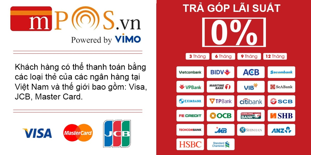 Điểm đặc biệt của chương trình trả góp lãi suất 0% bằng thẻ tín dụng thông qua MPOS là cho phép bạn mua hàng bằng thẻ tín dụng và trả dần trong vòng từ 3 – 12 tháng mà không phải bổ sung bất kỳ giấy tờ chứng minh nào. (Khách hàng cần cung cấp CMND để xác minh chủ thẻ)